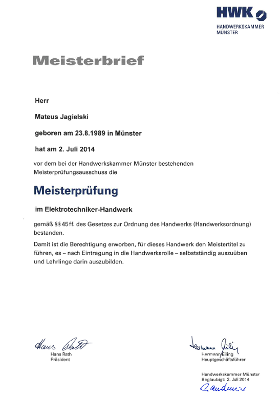✔ Elektrotechnikermeister mit über 10 Jahren Berufserfahrung