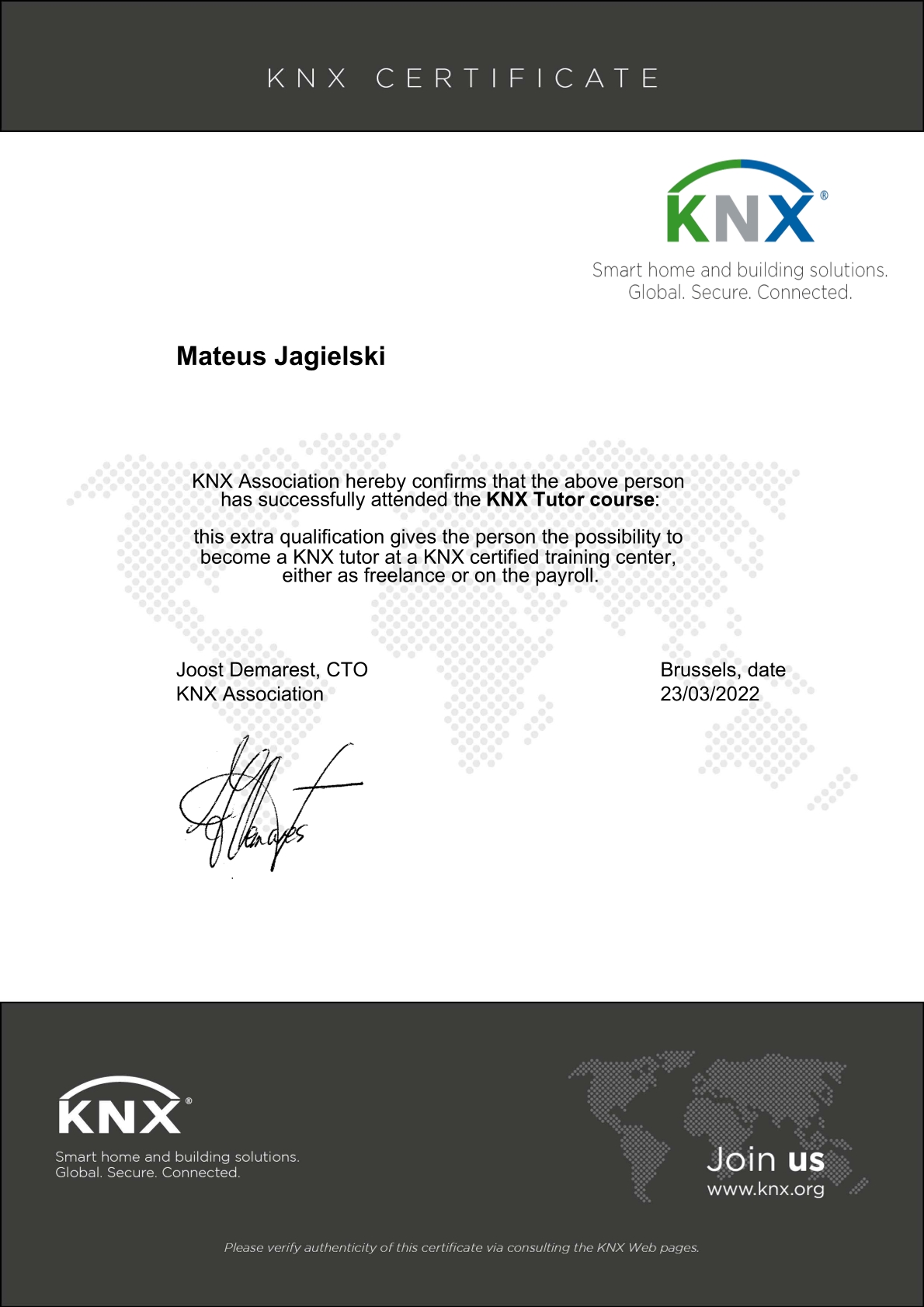 Seit über 10 Jahren unterrichte ich an der Meisterschule der Handwerkskammer Münster Themen wie Projektierung elektrischer Anlagen, Gebäudeautomation, Energiemanagement, Ladeinfrastruktur und Prüfung nach VDE 0100-600. Ich bin zudem Mitglied im Meister- und im TREI-Prüfungsausschuss, sowie zertifizierter KNX Tutor mit allen relevanten Ausbildungen der KNX Association (Basic, Advanced, HVAC Specialist, Tutor).