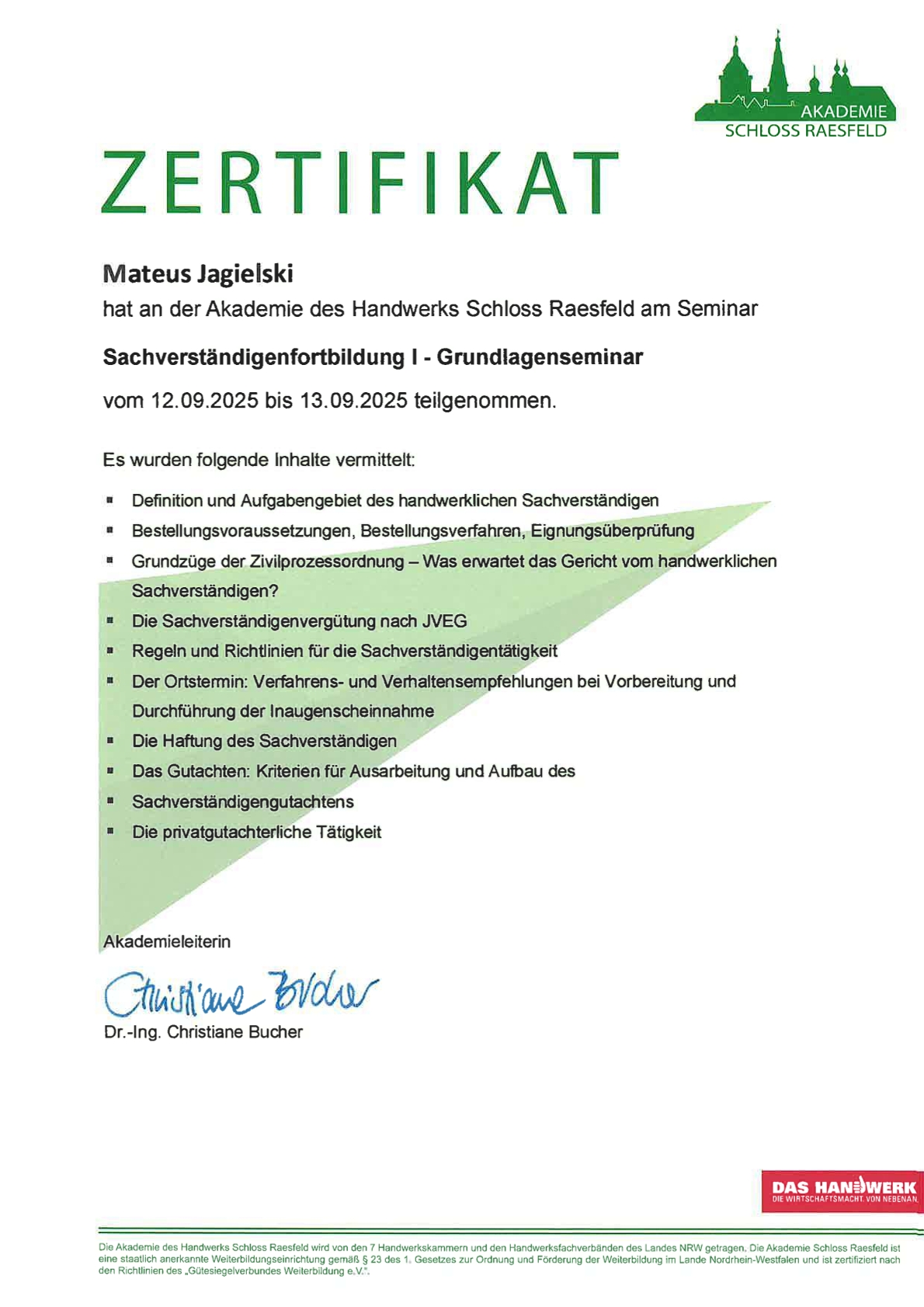 Daraus entstand der Wunsch, mein Fachwissen weiterzugeben, objektiv, unabhängig und in einer Form, die echte Orientierung bietet. Die Sachverständigentätigkeit ist für mich der logische nächste Schritt: